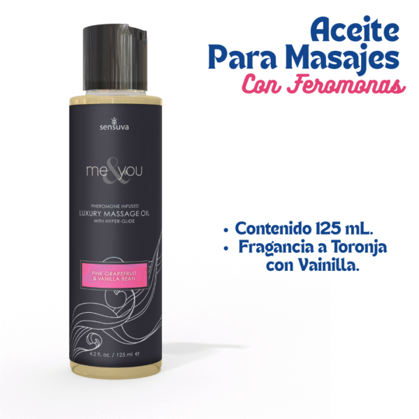 - La línea de aceites de masaje de lujo ME & YOU está enriquecida con feromonas (compatibles con ambos sexos) para que ambos se sientan atractivos y excitados.